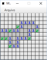 Um campo minado desenvolvido em Java usando a plataforma JavaFX, em março de 2016. Use o botão direito para marcar os locais onde achar que existem bombas, o jogo acaba quando todas as bombas estiverem marcadas e todas as células sem bombas estiverem abertas.